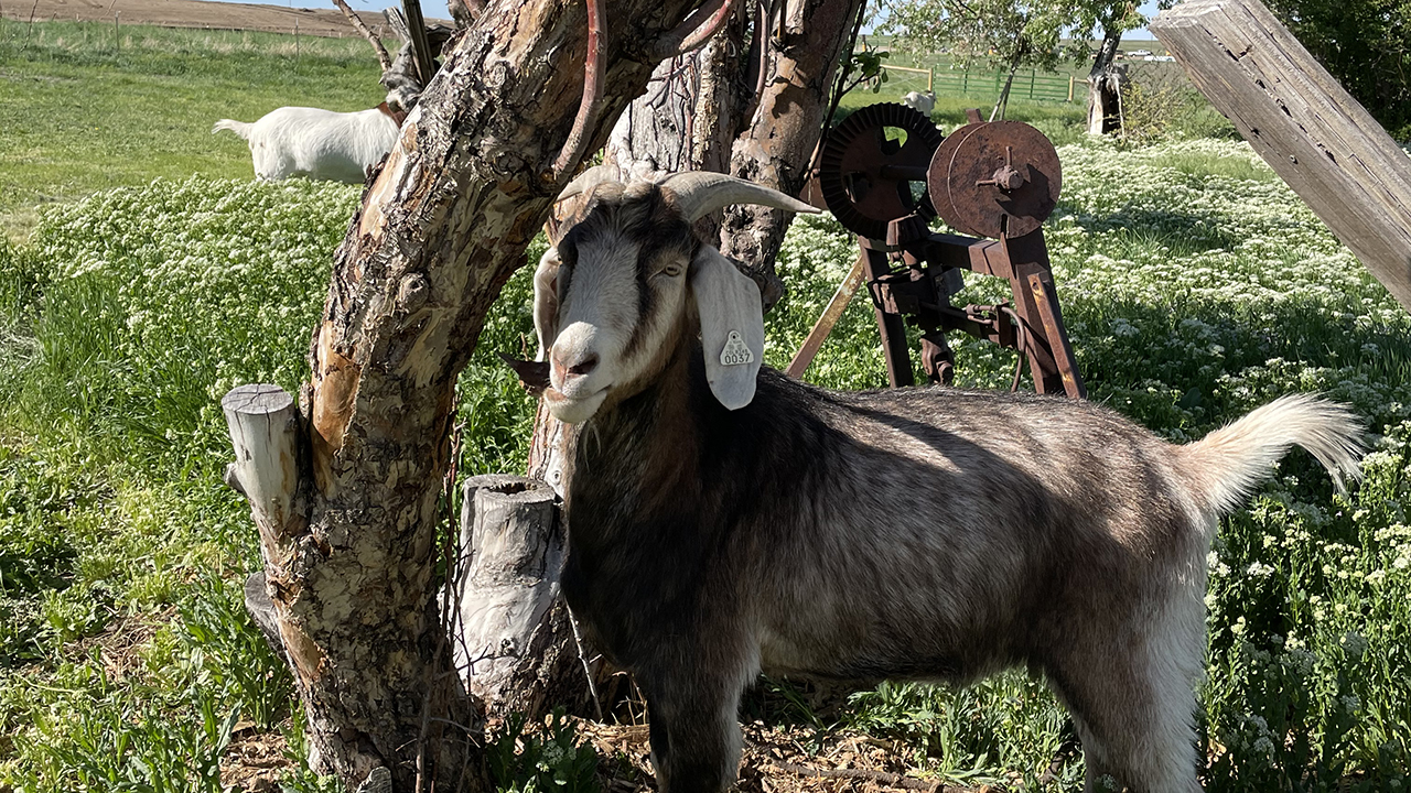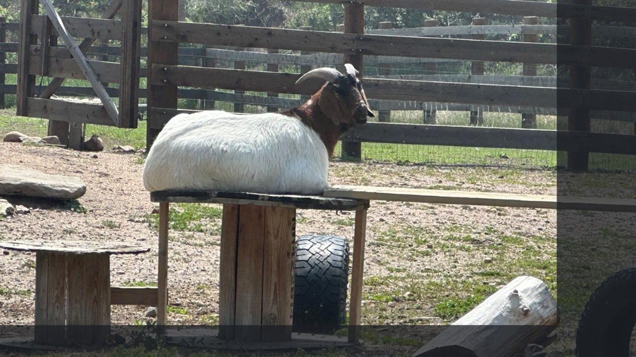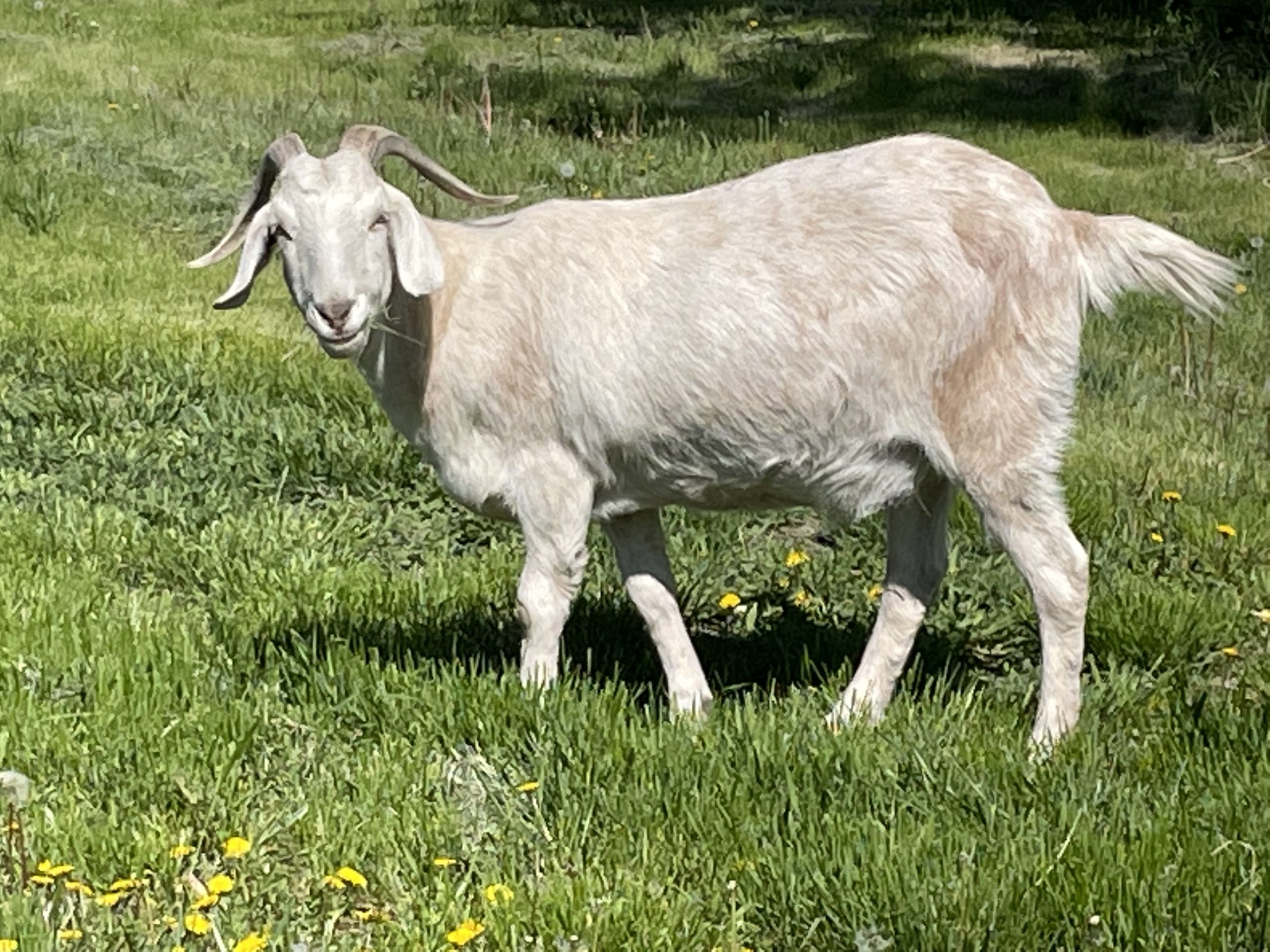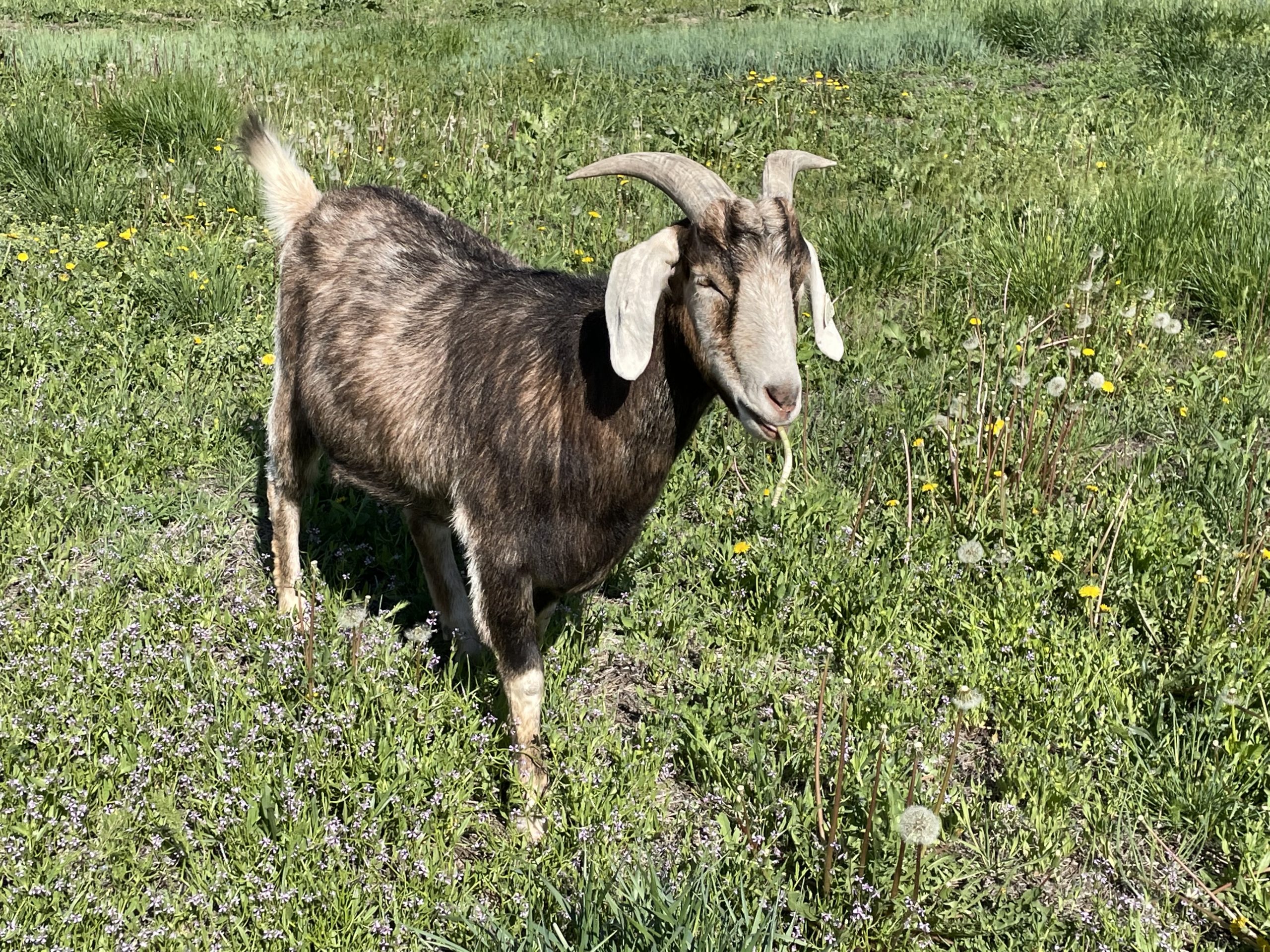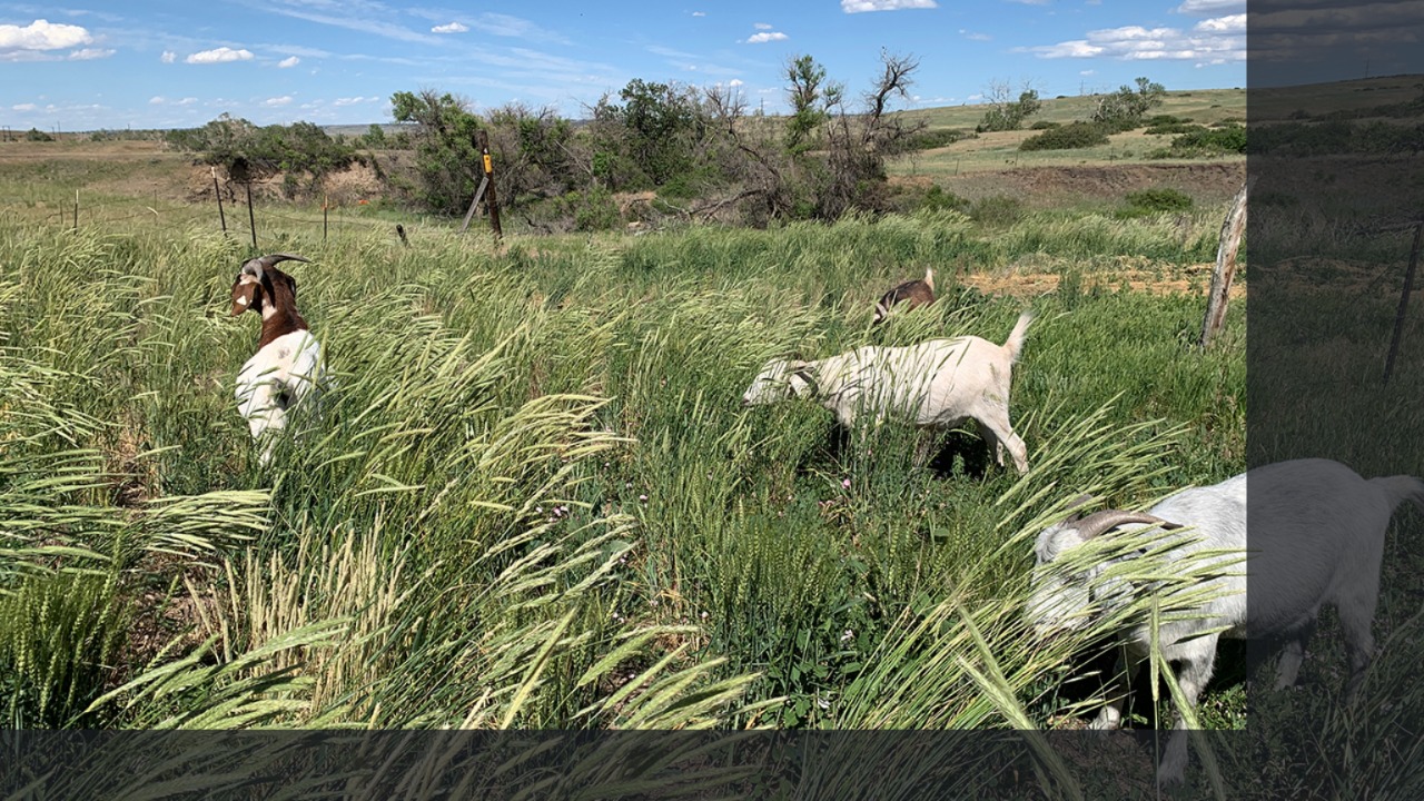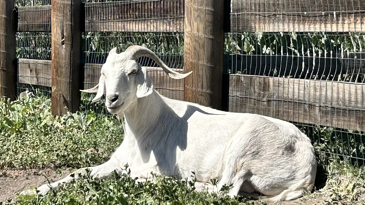 The goats were purchased in 2018 from a 4H family in northern Colorado. At the time of purchase the goats were four months old and small enough to fit all together inside a large dog crate for transportation. Now they have grown to 200+ pounds, and each eat roughly 3 pounds of grass per day, along with natural grazing.