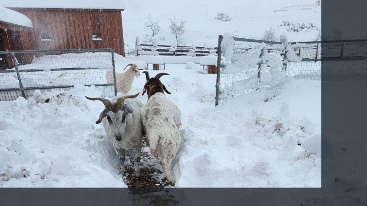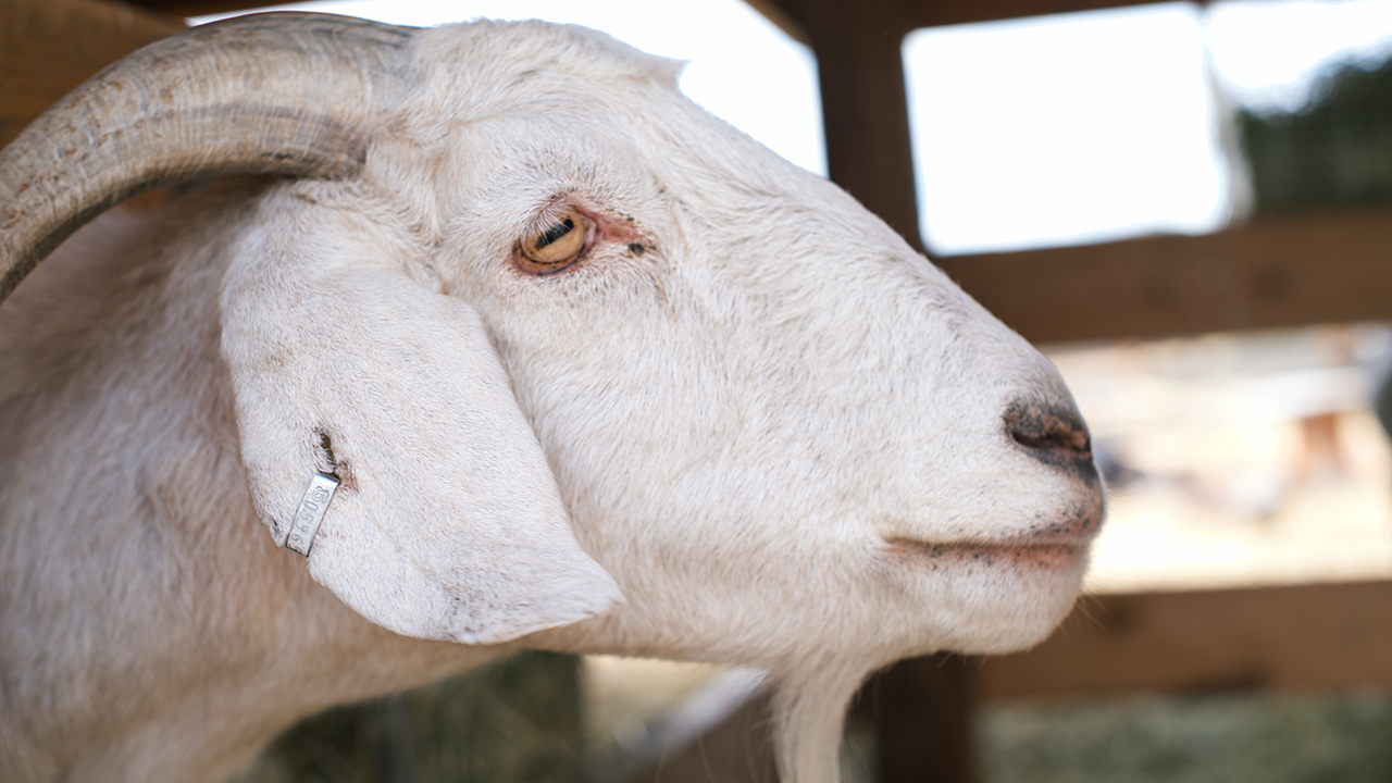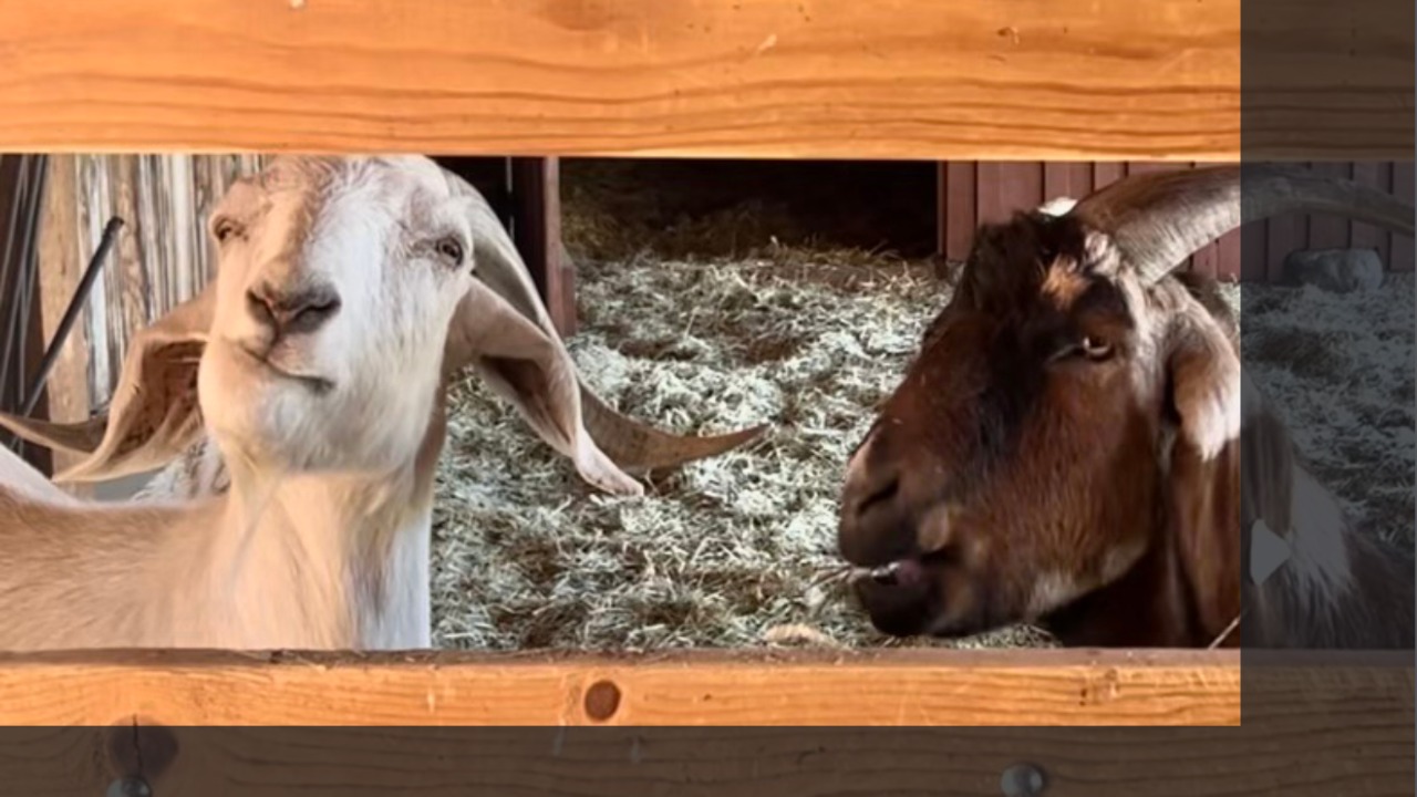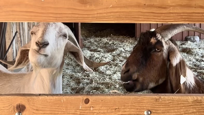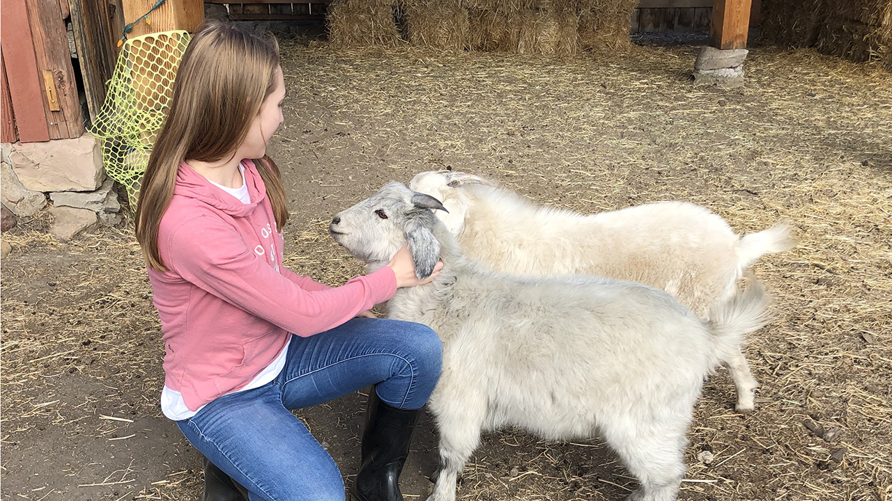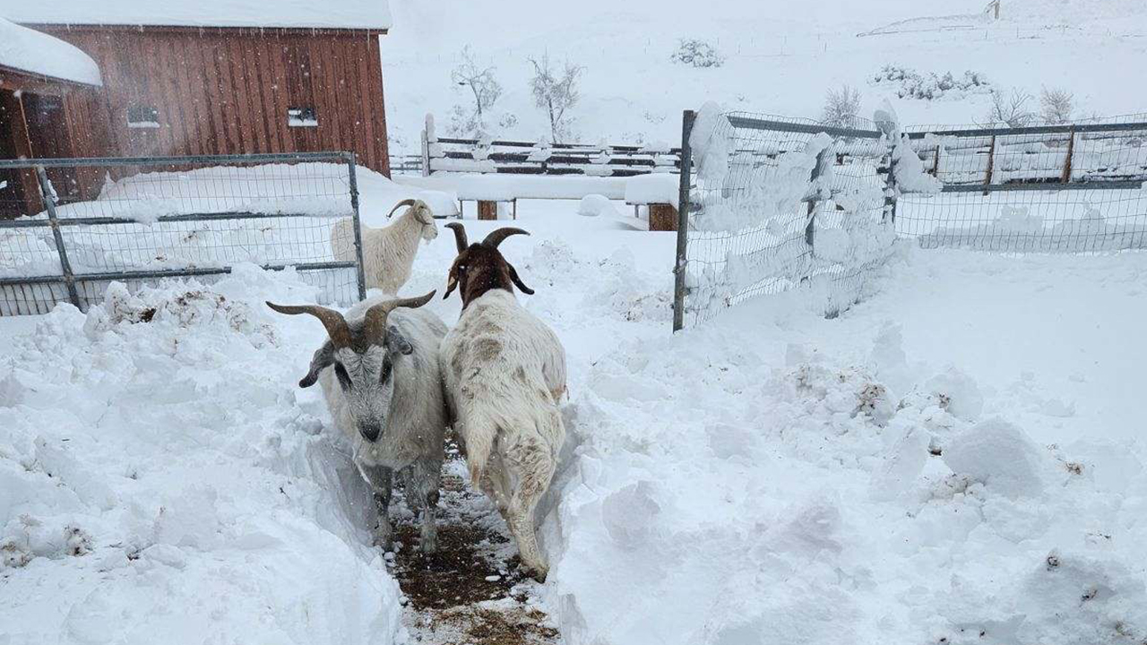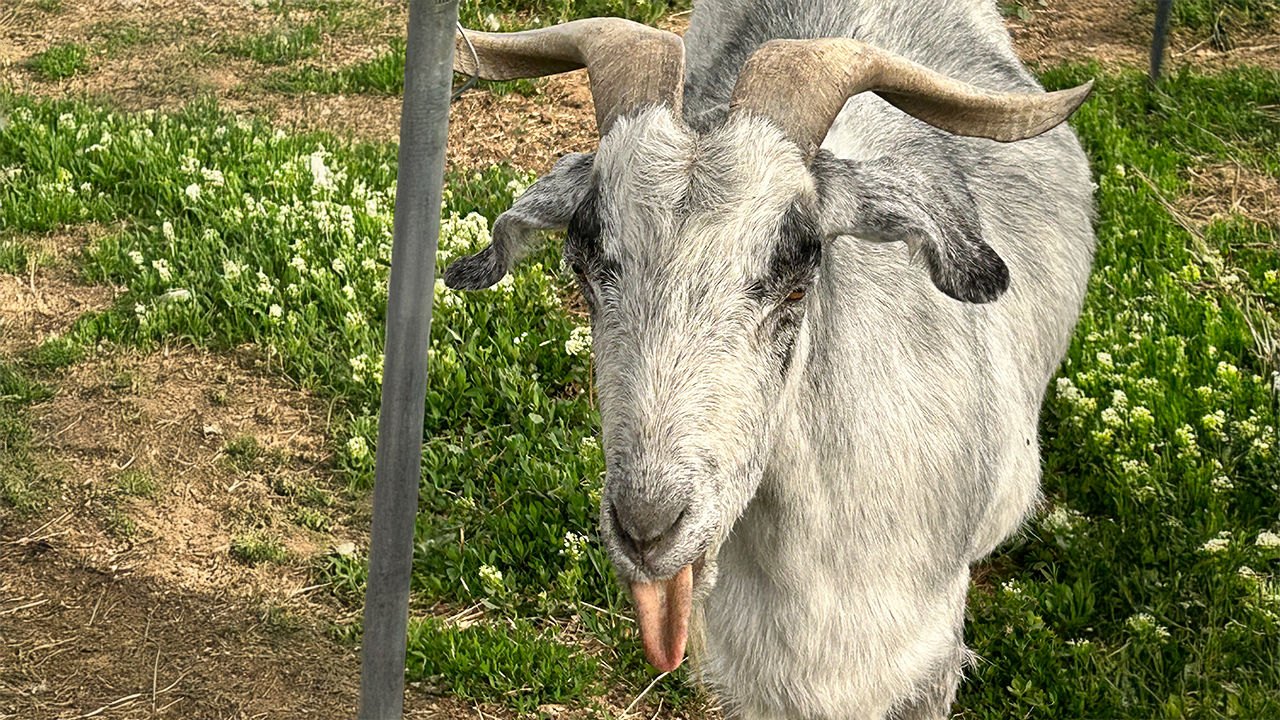 Interesting goat facts: An average life span of a goat is 7-14 years; although we hope our ornery boys will be around for a long time! A common myth is that goats can eat anything. While some goats are bred for landscape mitigation, the Schweiger goats are very picky about what they eat and have sensitive stomachs, limiting their feed options to Timothy grass and natural grasses found on the Ranch when grazing. Similar to cows, goats have a four-chambered stomach to help them digest tough roughage. Our goats do not like to get wet. During storms and cold weather, you can find them sheltering under the historic loafing shed or in an enclosed room attached to the barn to stay dry and warm. They also are very particular about the temperature of their water and won’t drink water that is too cold. During the winter months, their water is slightly heated to keep it at a comfortable temperature and avoid freezing.