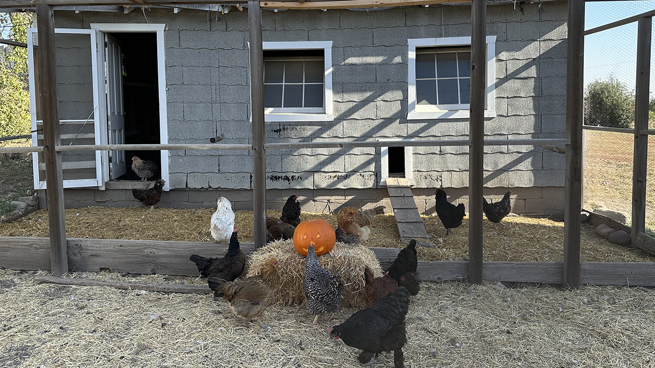 A typical life span of a chicken is 5-10 years, however as our beloved feathery friends, we hope they will be with us for much longer. Our hens enjoy a safe and secure coop and outdoor run protecting them from predators, and stay nice and cozy during the winter months with coop heaters and heated water buckets. Their favorite treat is dried meal worms, fresh vegetables, and grasses from around the ranch.
