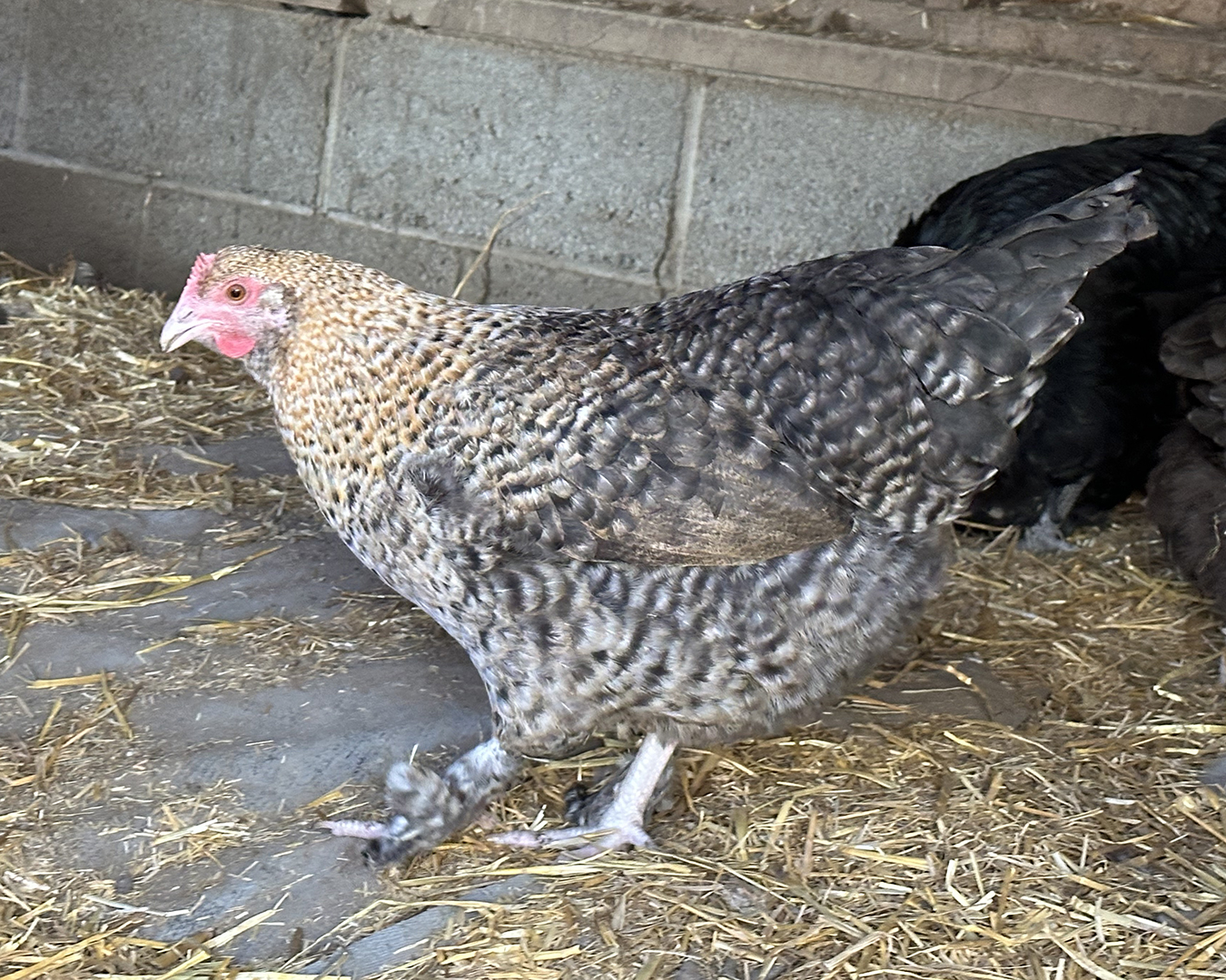 The Speckled Sussex is one of England’s oldest chicken breeds, with roots tracing back to Roman times in the Sussex region. Their deep mahogany plumage is sprinkled with white speckles that increase with age and molting, making them even more beautiful as they mature. Speckled Sussex hens are steady layers, producing 200–250 large cream to light brown eggs each year. Known for their curiosity and friendliness, they often follow their keepers around and enjoy being part of daily activities. Their talkative nature and charming personality make them excellent backyard companions, and many keepers consider them the “pets” of the flock.