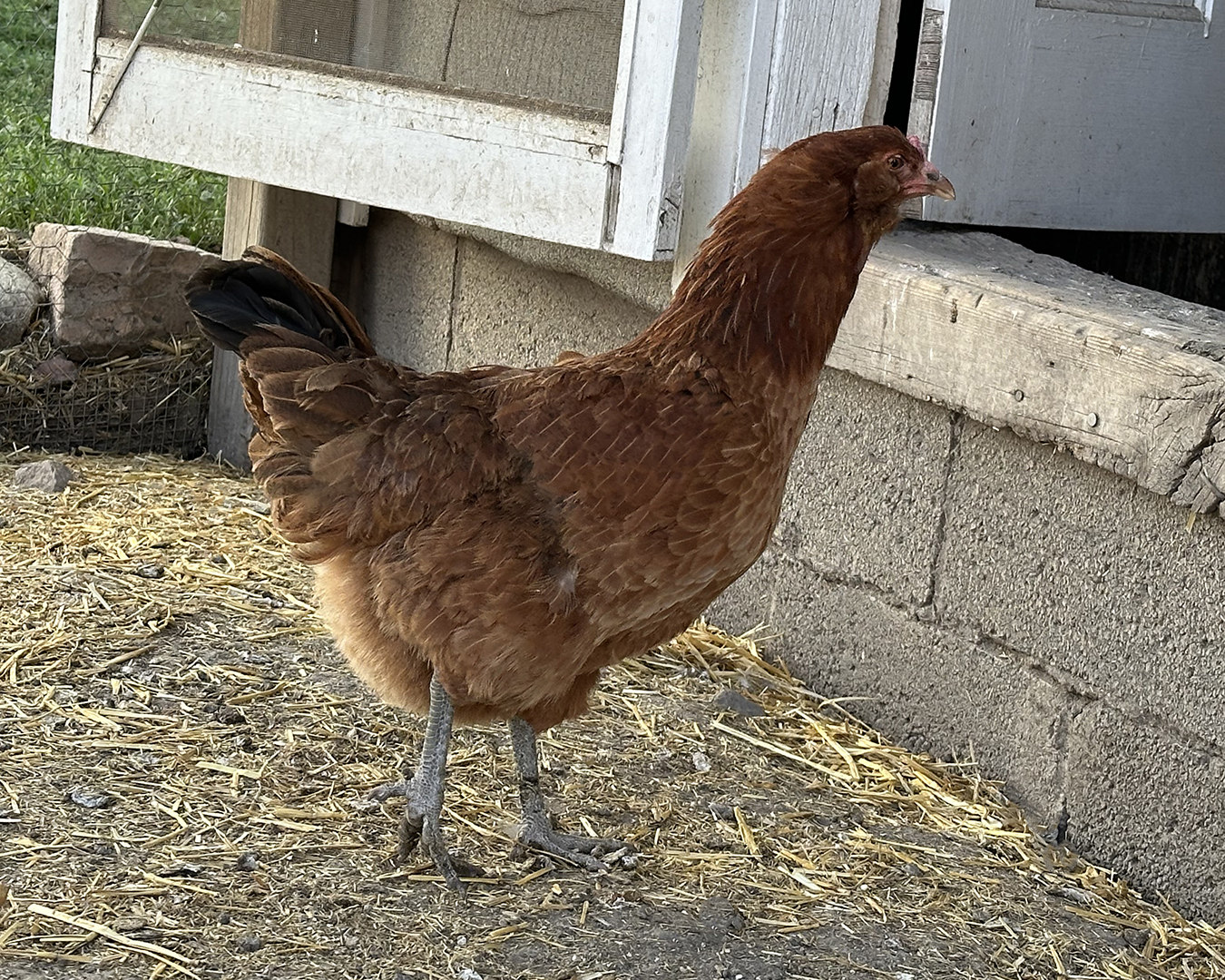 Ruby, our other Rhode Island Red, was purchased in 2023 at six months old. She is lighter in color than Rosie, and is named after the 1960 Ray Charles song, Ruby.