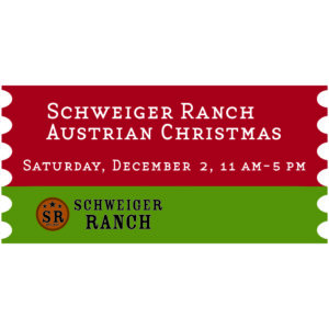 Schweiger Ranch presents its 9th annual Austrian Christmas event on Saturday, December 6, 2025 from 11am-3pm to celebrate the Austrian heritage and culture with Santa, reindeer, carriage rides, authentic Austrian food, entertainment, crafts, and local handcrafted gifts.